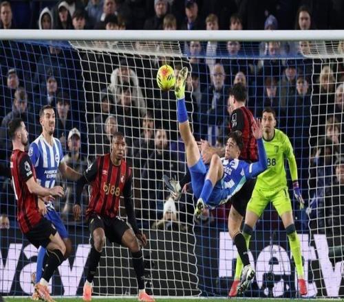 英超布莱顿11伯恩茅斯塔韦尼耶点射科斯托拉斯补时倒钩扳平